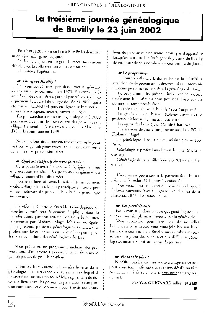 LA REVUE GENEALOGIQUE FRANC-COMTOISE - AVRIL 2002